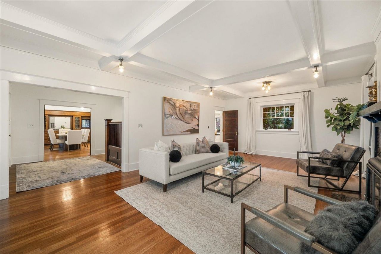 Historic Tudor architecture in Spokanes Rockwood neighborhood. Designed by noted architect W.W. Hyslop, this iconic home sits on approximately 0.42 acres overlooking city lights. Architectural details include restored leaded glass windows, original built-ins, hardwood floors, a dramatic central staircase, and stunning box beam ceilings in both the living and dining rooms. The formal dining room is rich with character, while the entire home feels fresh, warm, and inviting. The kitchen features quartz countertops, double ovens, and generous prep space. Three updated bathrooms offer modern comfort and style. Multiple living areas include a fireplace-centered main living room and a walk-out lower level with additional bonus space. An expansive wrap-around porch captures sunset views and Mt. Spokane. Mature landscaping, updated HVAC, and proximity to Manito Park, the medical district, dining, shopping, and downtown complete this exceptional home.